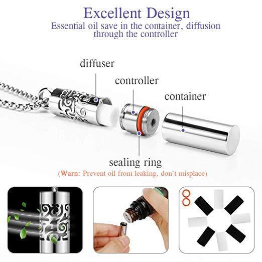 About the product ☘【Utmost Quality】This beautiful essential oil diffuser necklace Made of 316L stainless steel to ensure its durability, it will not fade, tarnish, rust or stain! Diffuser necklace is lighter and smaller than the old version of others. It is more suitable and comfortable for wearing as pretty jewelry...