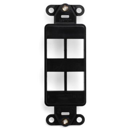 Wallplate Insert, Decora, QuickPort, 4-Port, Empty, Box Mount, Color: Black.QuickPort Decora Insert, 4-Port, BlackAlso known as: 078477013823, 41644-E, LEV41644E