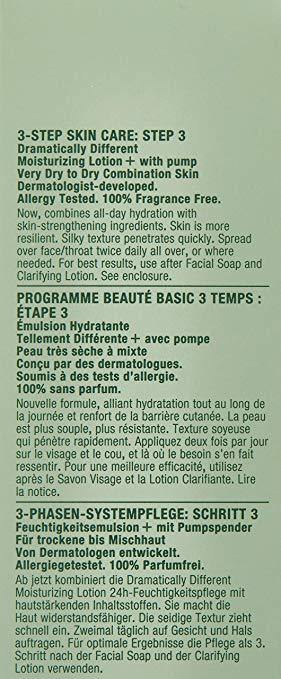 A total different moisturizing lotion. mmediately drenches dry skin with optimal hydration. mmediately drenches dry skin with optimal hydration. Clinique Dramatically Different Moisturizing Lotion+ with Pump Size is 4.2 oz / 125 ml for Very Dry to Dry Combination Skin Delivers twice the hydration all day. Skin feels soft, springy...