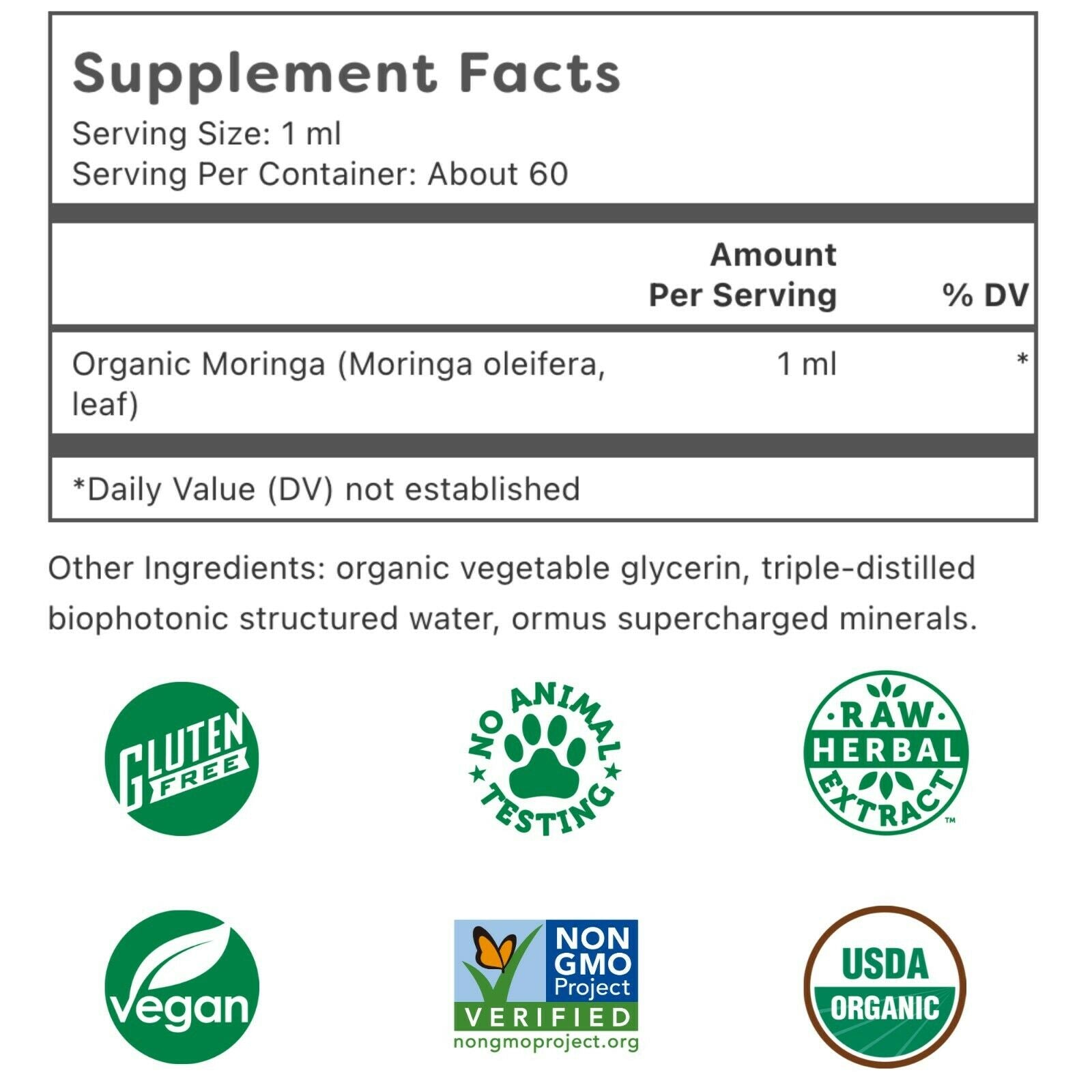 GLOBAL HEALING MORINGA Certified Organic Moringa Raw Herbal Extract™, 2 fl oz