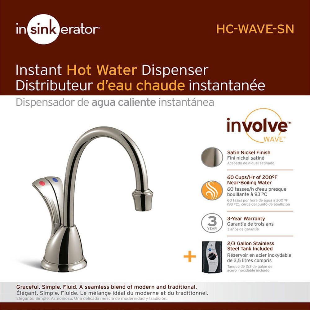 InSinkErator® Wave Instant Hot and Cold Water Dispenser System, Satin Nickel, HC-WAVE-SN