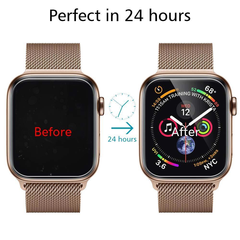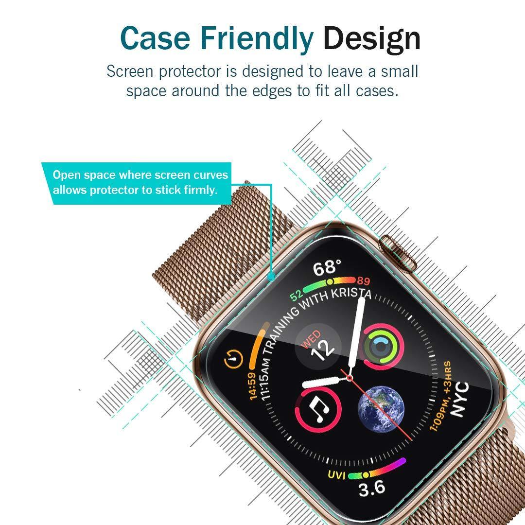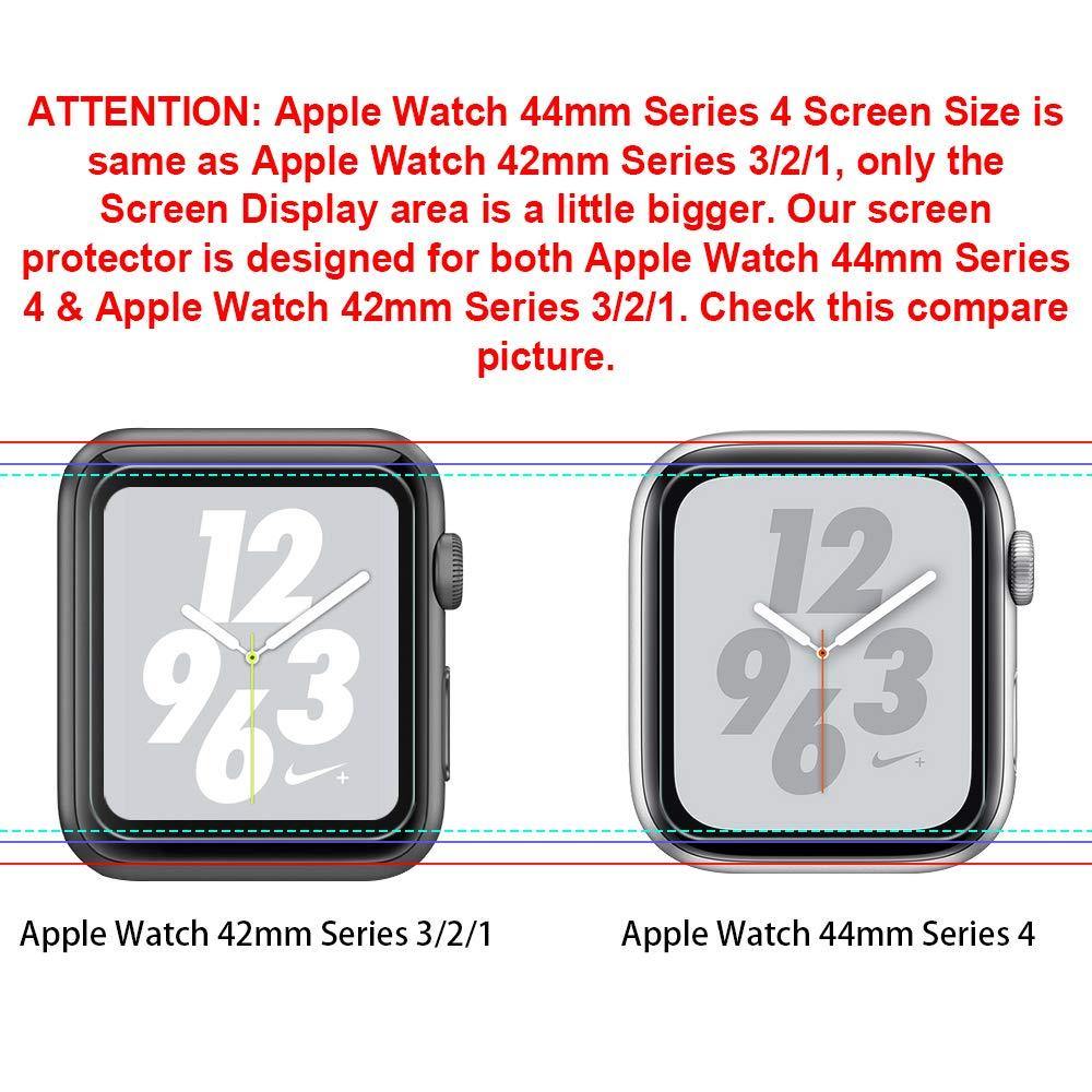 • ★ Compatibility - Designed for Apple Watch (44mm Series 4) ONLY. This Apple Watch Screen Protector is made of a flexible film that offers clarity with no bubbles & no rainbow marks. Please NOTE: It's normal for bubbles or a rainbow effect to appear during the initial application since they will disappear once dry.
