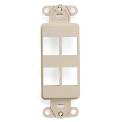 Wallplate Insert, Decora, QuickPort, 4-Port, Empty, Box Mount, Color: Ivory.
