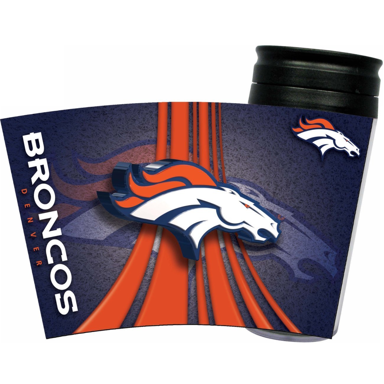 Go to the shopDenver Broncos Insulated Travel Tumbler Mug 16 oz. Double wall acrylic travel mug with a seal-able top cover. Features vortex wrap design of your favorite NFL football team and non slip bottom. Officially licensed by NFL.