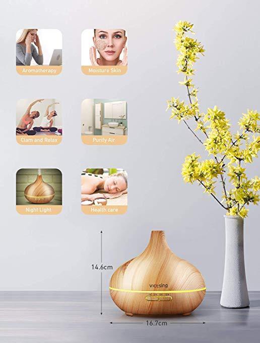 VicTsing 300ml Cool Mist Humidifier Ultrasonic Aroma Essential Oil Diffuser for Office Home Bedroom Living Room Study Yoga Spa - Wood Grain