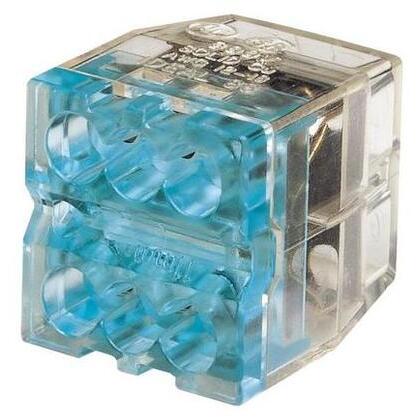 Push-In Wire Connector, 6 Ports, 600V, Conductor Range: 20 to 12 AWG, Color: Blue. Package of 100.