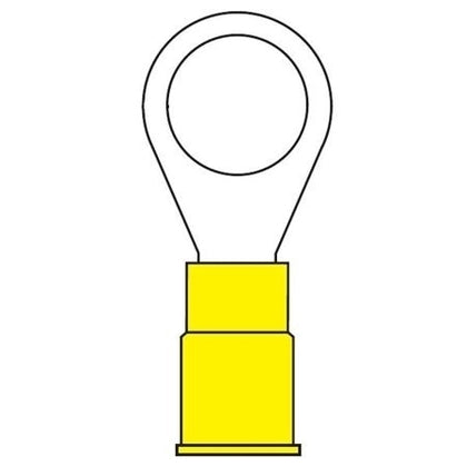 Ring Tongues, Vinyl-Insulated, Wire Range: 12 - 10, Stud Size: 3/8, Color: Yellow, 25/PK3M™ Highland™ Ring Tongue Terminal ensures an ideal fit while offering reliable and safe performance. The terminal has a vinyl-insulated, butted-seam barrel and withstands temperatures of -40 to 221 degrees F (-40 to 105 degrees C). Electrolytic...