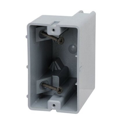 Switch/Outlet Box, 1-Gang, Screw-On, New/Old Work, 3-1/4 Inch Depth, 18.500 Cubic Inches, Non-MetallicThe 1-4 gang Smart Boxes are unmatched in versatility in new work locations where you can not swing a hammer and where final wall surfaces are uncertain example; kitchens and baths. They are unmatched in old or retro...
