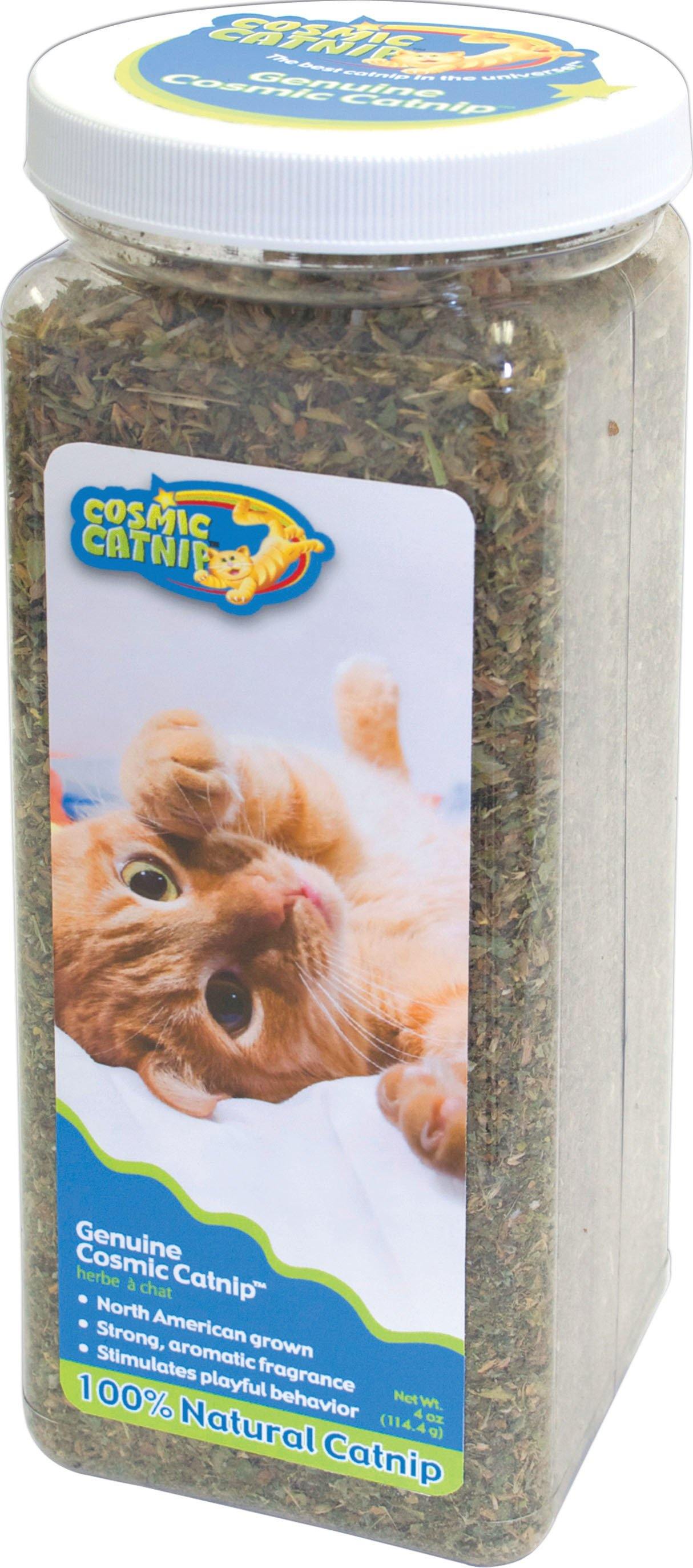 Cosmic catnip has been grown to achieve the strongest most aromatic catnip ever produced. Cosmic catnip is a 100% natural herb that stimulates a harmless playful reaction in most cats. When pinched the aroma stored in the dried leaves and flowers is released driving cats wild. Size: [4 Ounce]