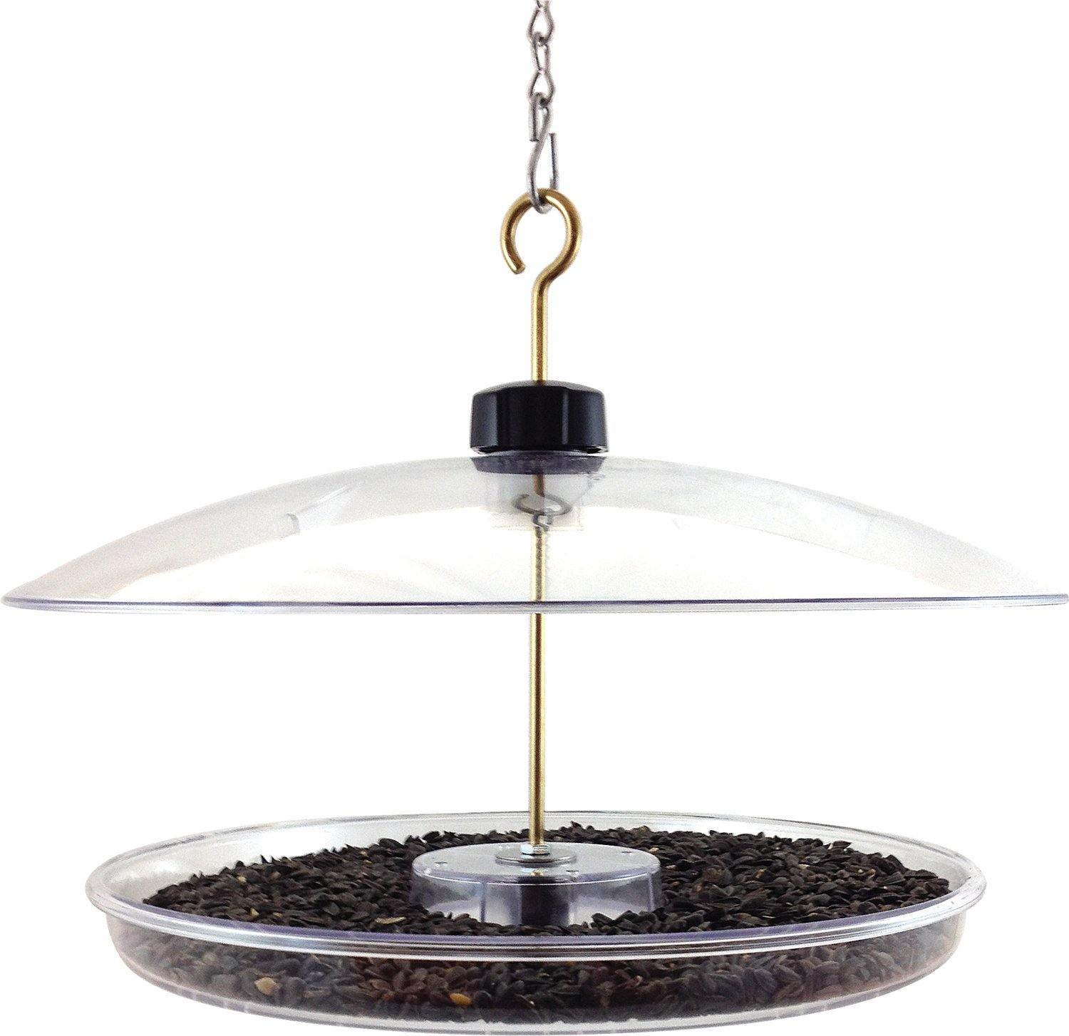 Dish saves dropped food and holds sunflower seed mixed seed fruit and mealworms. Protective dome is height-adjustable to invite all birds to feed or to keep larger birds out. Feeder tray unscrews for easy cleaning. May be hung by the included brass rod. Uv-stabilized polycarbonate will not turn yellow with...