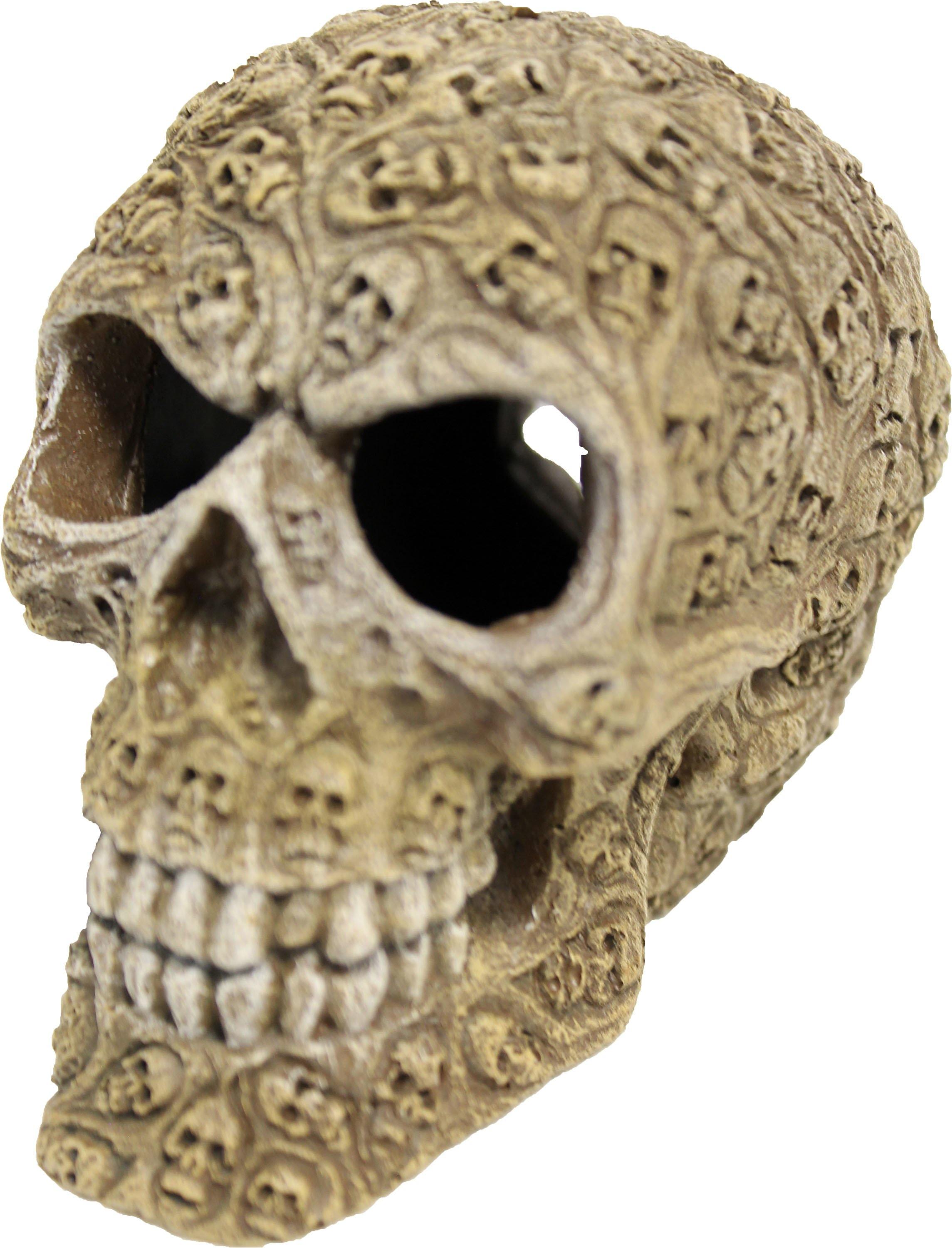 Tiny skulls are carved into the outside of this larger creepy haunted skull Safe for all terrariums & aquariums freshwater & saltwater Size: [Small]