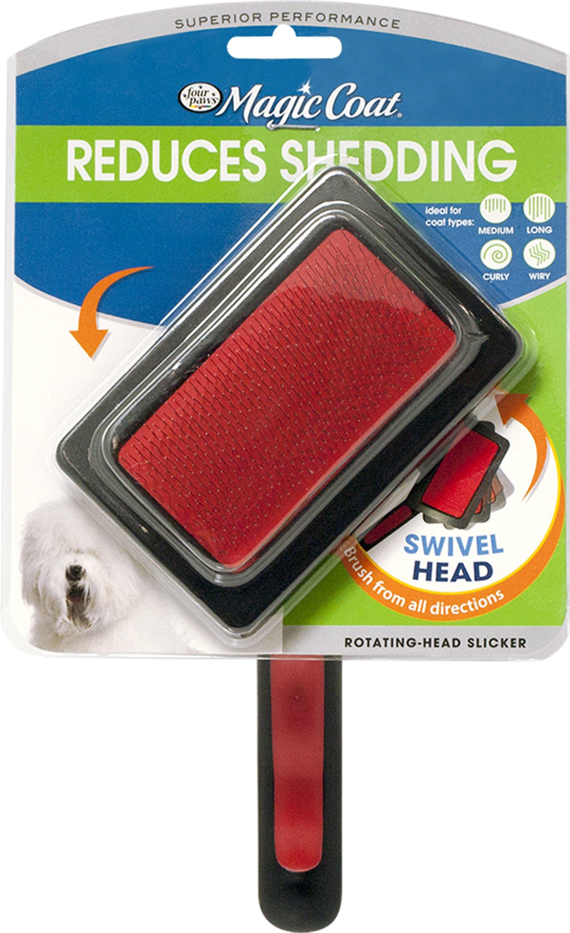 Swivel head that locks into 8 different positions to allow brushing from all angles and directions Allows for easier grooming of a dogs underbelly especially for long-haired breeds Sturdy ergonomic handle provides strong leverage and grip to help remove stubborn mats and loose hair Helps to stimulate skin to promote...