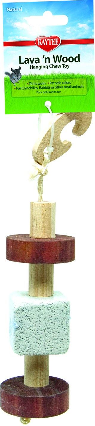 Features a unique combination of volcanic rock material and natural wood pieces. Helps keep your pet's teeth trim and clean while encouraging healthy activity. Simply hang the toy in your pet's cage and watch as they chew and play the day away. Ideal for chinchillas rabbits or other small animals....