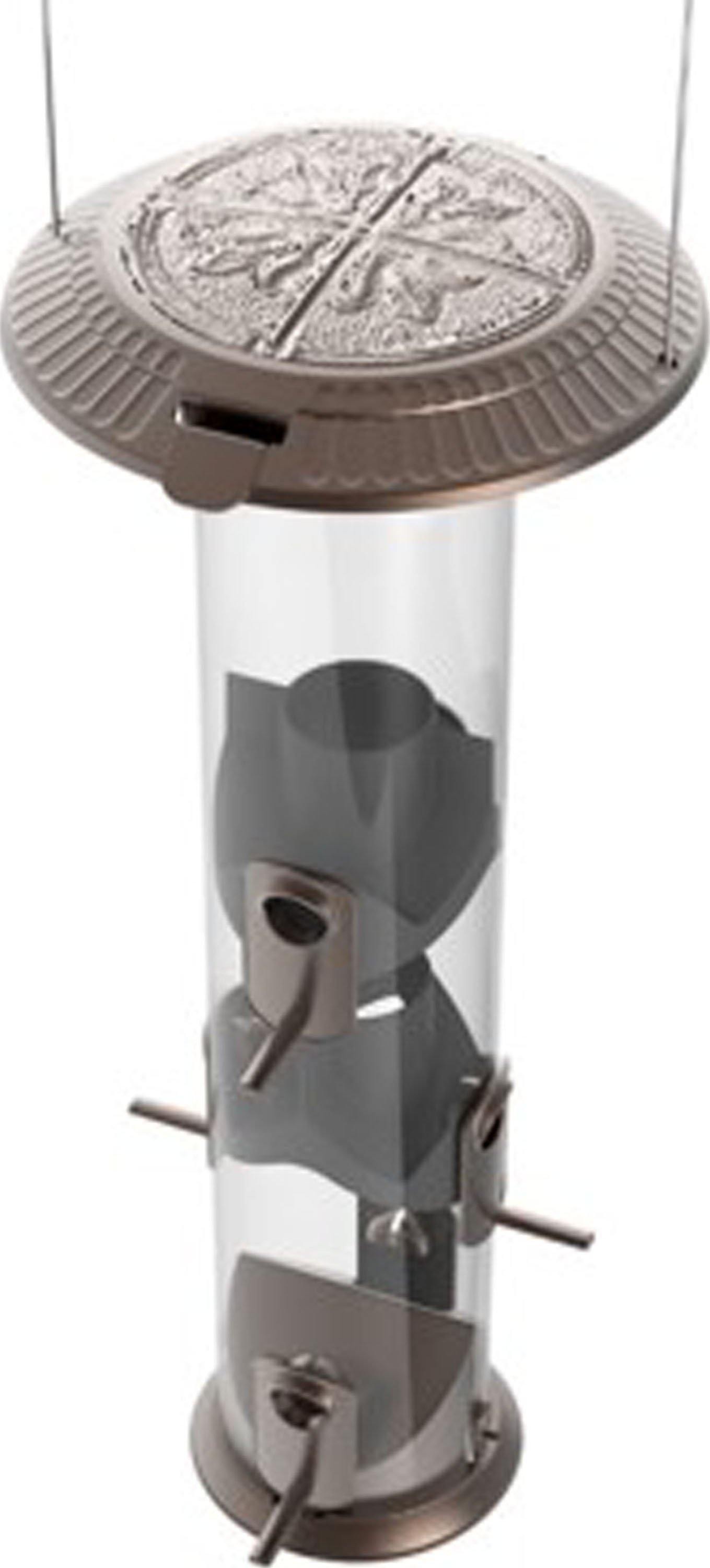 Allows for easy hassle free fill with less spilling No tools required to easily remove all parts for easy hassle free cleaning-dishwasher safe. Keeps seed at all ports for more birds attacted to feeder Can choose between sunflower or thistle seed with 1 feeder. 2-in-1 insert Rust free metal parts...