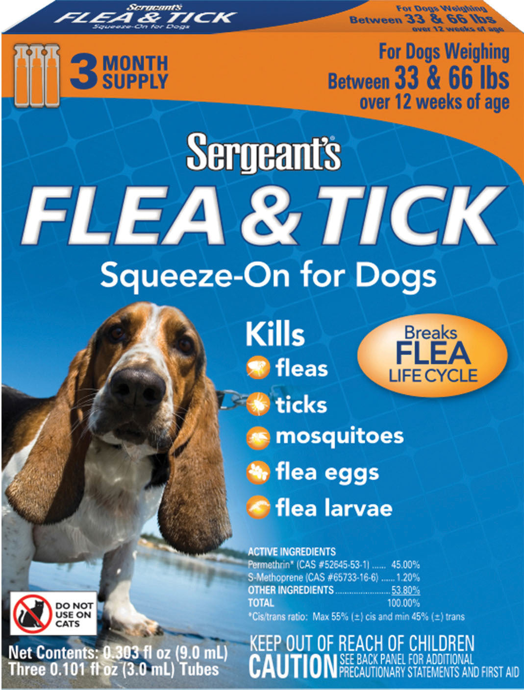 Kills fleas ticks flea eggs larvae and mosquitos. Pack contains 3 - 3.0ml tubes. Size: [Over 33 Lb]