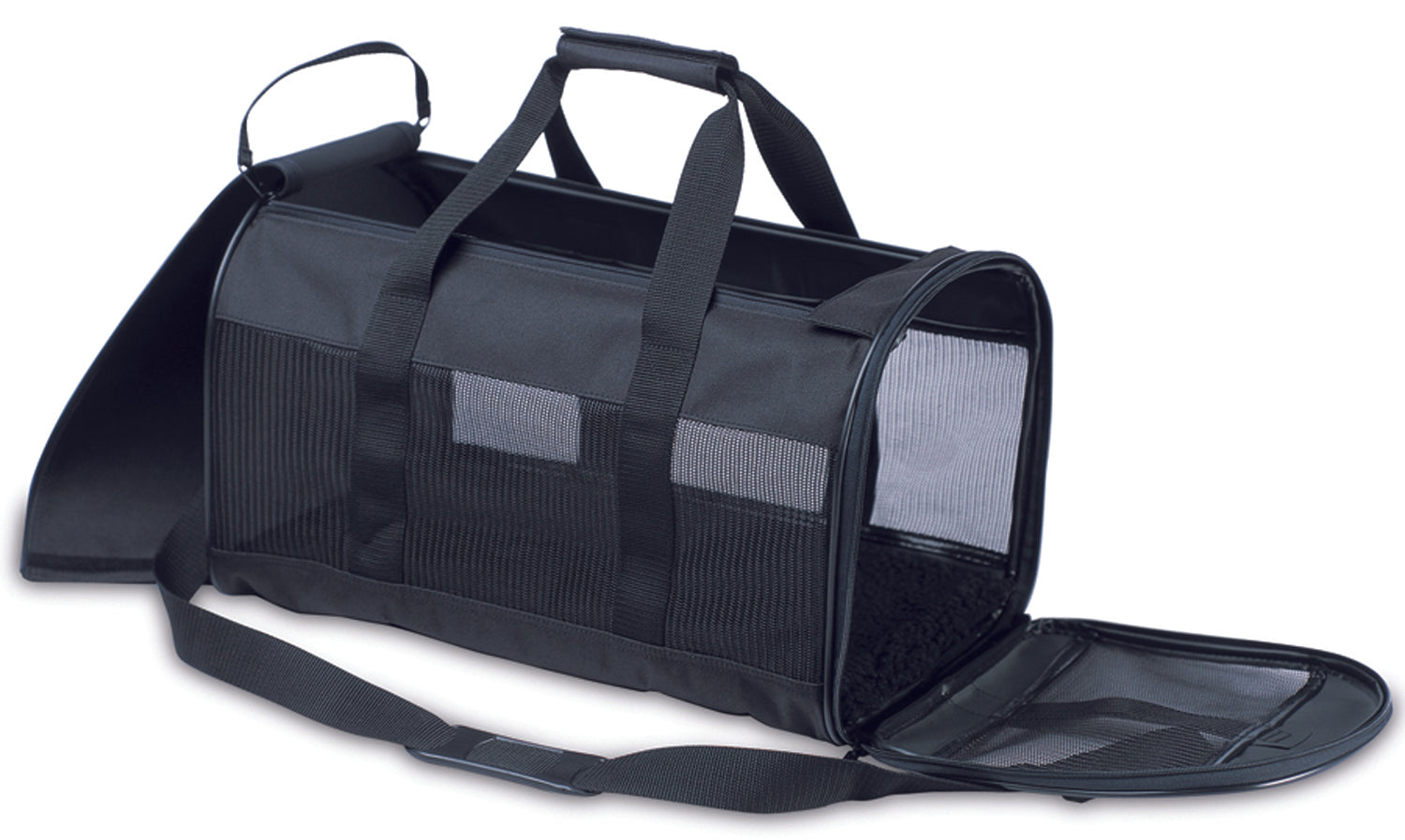 Zippered front and top loading door. Cool mesh ventilation. Black color. Size: [17x10x10 In]