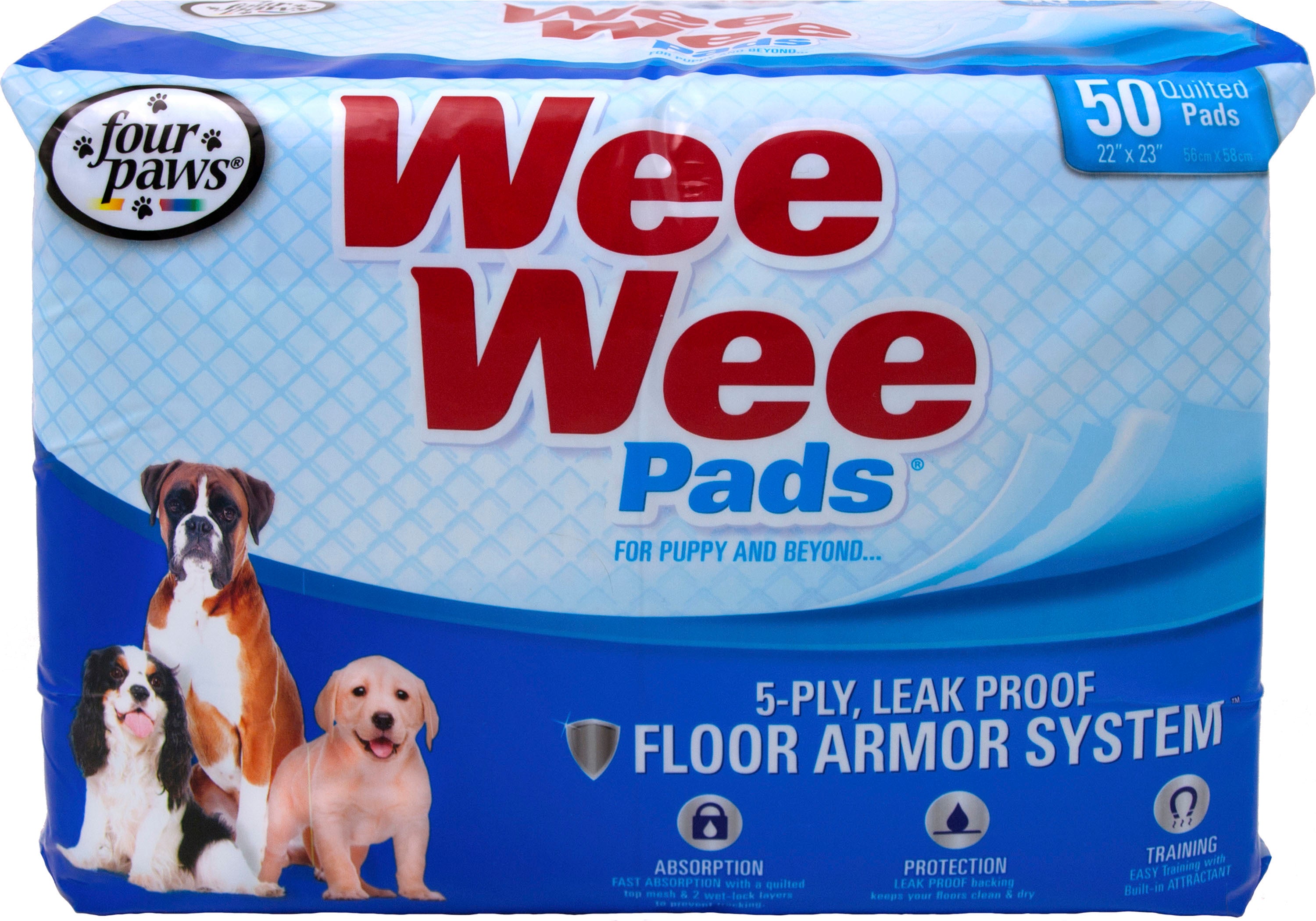 • The super absorbent wee-wee pad is scientifically treated to attract puppies when nature calls.
