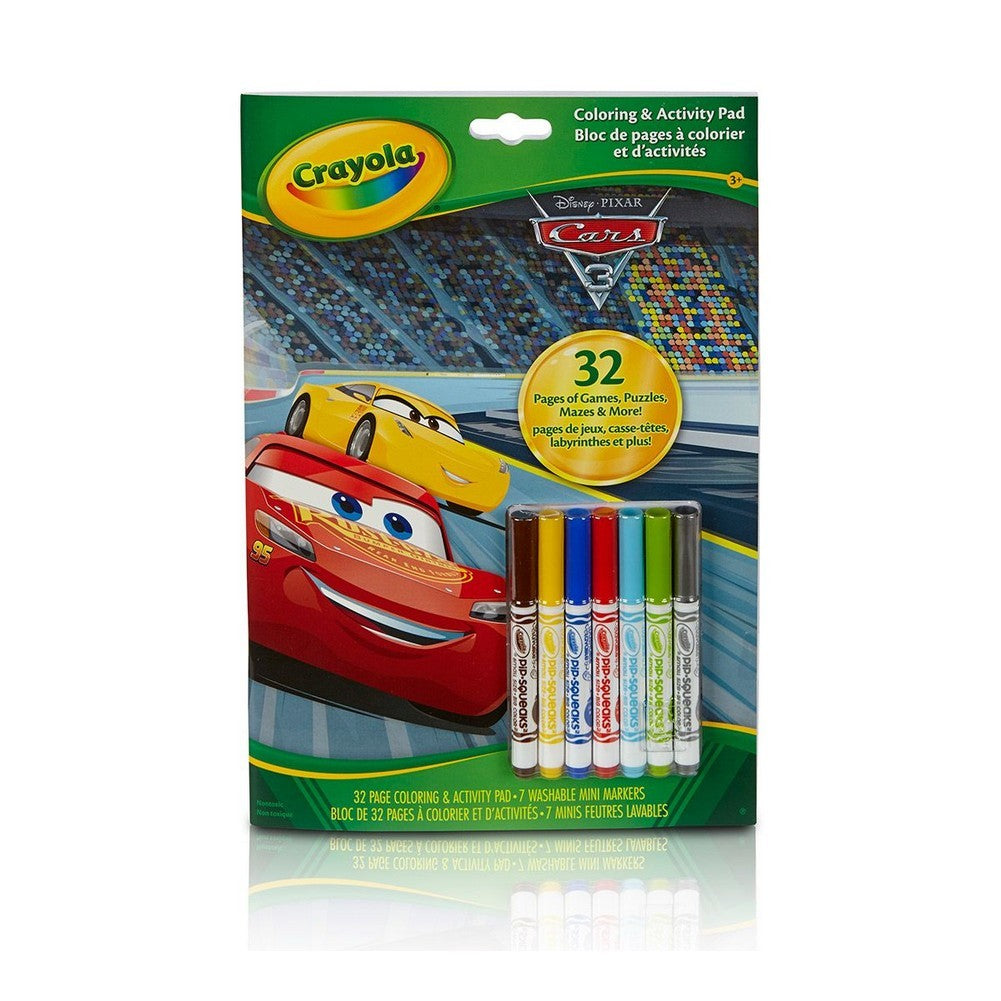 Loaded with Disney/Pixar's Cars 3 themed line art mazes hidden pictures matching games and more the Crayola Coloring & Activity Pad offers hours of fun. Perfect for keeping kids entertained while traveling this book features line art and activities appropriate for kids aged 3 years and older.