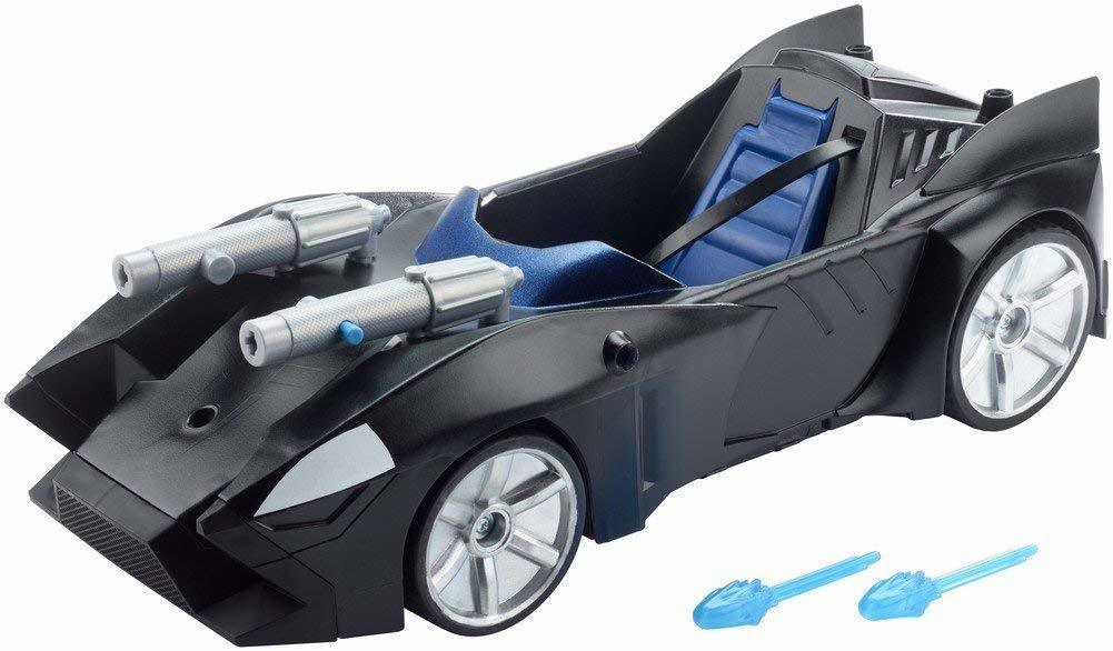 Speed to the battle scene in this 12-Inch signature Batmobile with colorfully cool new Justice League Action details. Armed with double mounted blaster weaponry, you can fire projectiles from the vehicle and stop Super Villains in their tracks. Fits all 12-Inch Justice League action figures, sold separately.