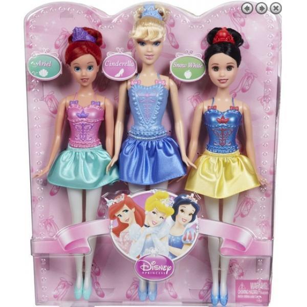Your favorite princesses are on their way to happily ever after in beautiful ballet style! Includes Ariel, Cinderella and Snow white dolls.
