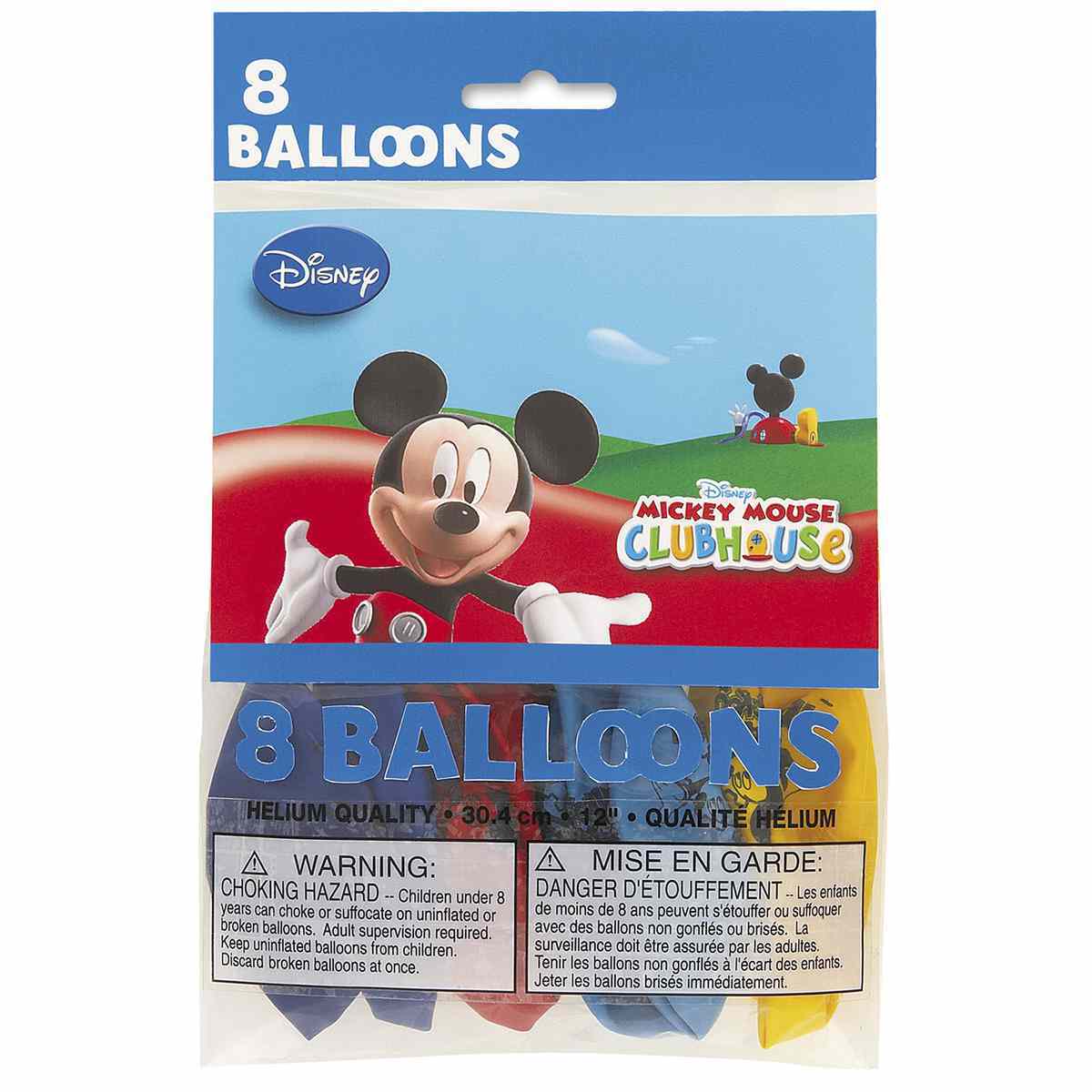 Throw an extra special Mickey Mouse birthday party! Each package contains eight latex balloons. Balloons measure 12 inches.