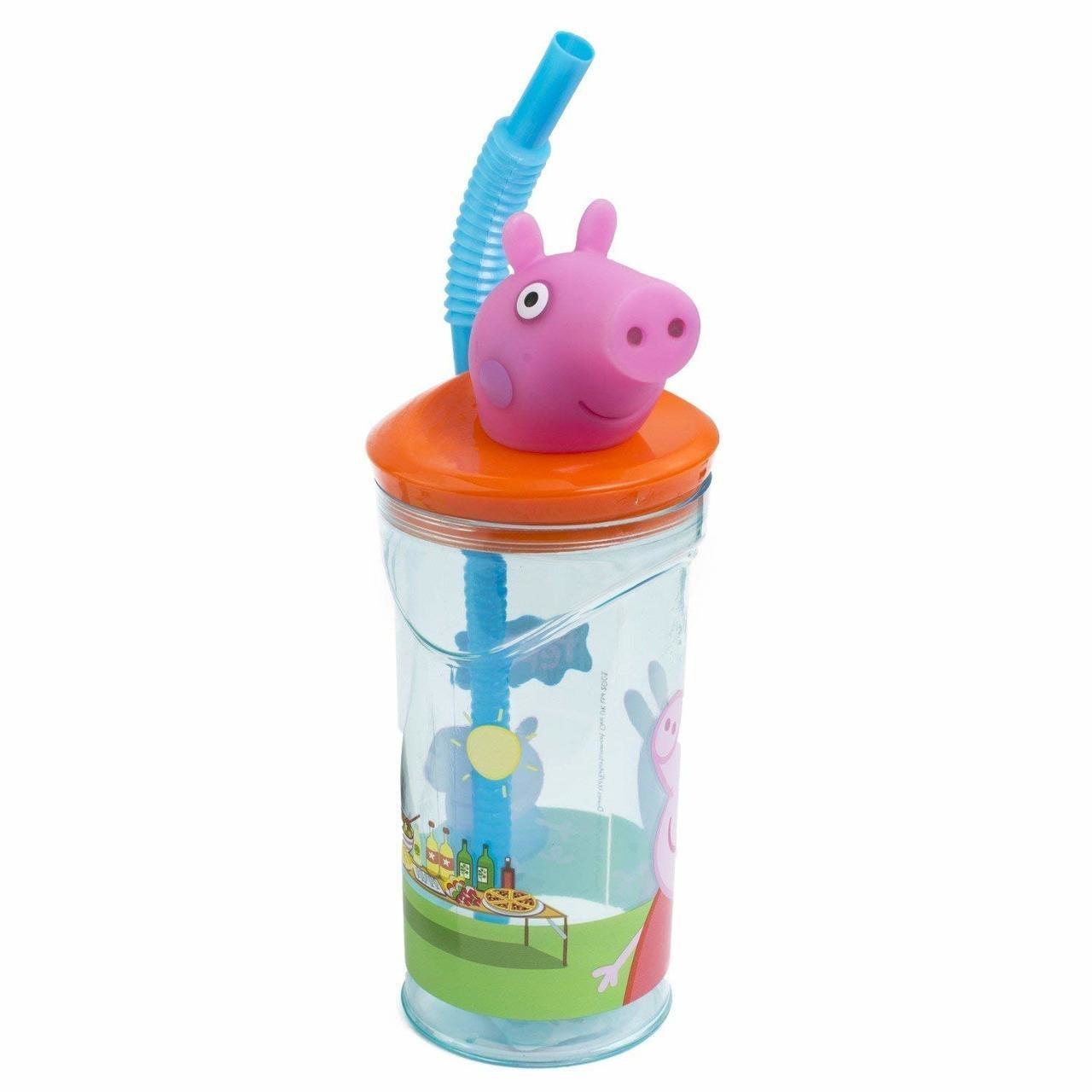 Tumbler with large 3D Peppa Pig Colourful printed design Includes expanding straw Straw stopper to avoid spillages.
