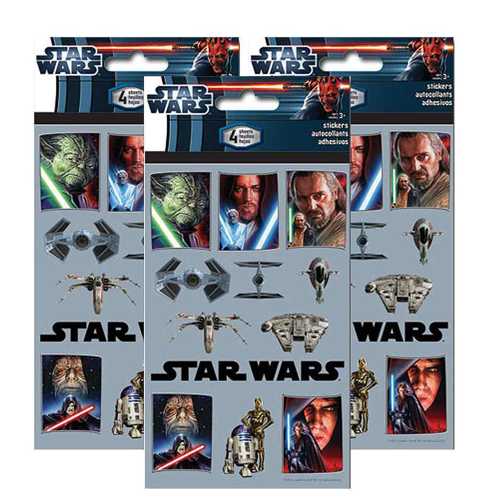 Includes 3 packs of 4 sheets each for a total of 12 Star Wars sticker sheets.